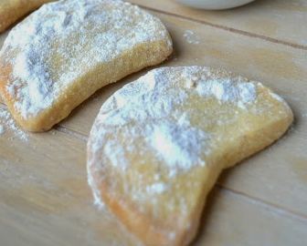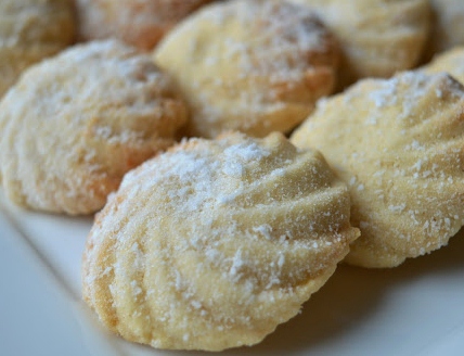 115 gr roomboter op kamertemperatuur, 100 gr witte basterdsuiker, 1/2 tl geraspte citroenschil, 1 tl anijszaad, 165 gr bloem, Poedersuiker.