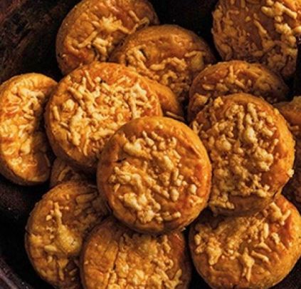 150 gr boter op kamertemperatuur, 150 gr Manchego geraspt, 1-2 tl verse tijm fijngehakt, ½ tl zout, 225 gr bloem, peper. Extra: 1 ei losgeklopt, 75 gram Manchego geraspt om te bestrooien, bloem voor het werkblad.