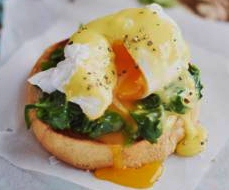 6 eieren, ½ citroen, 120 gr boter, 400 gr spinazie, 2 witte bollen.
