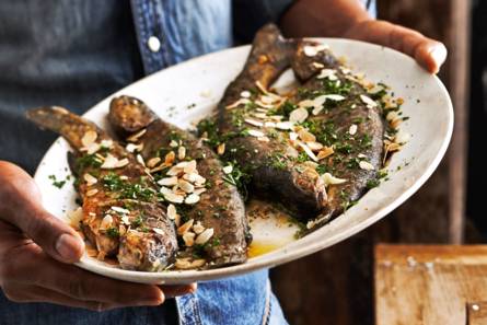 Forel met amandelen